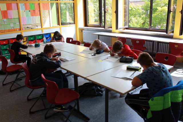 In der letzten Ferienwoche schon wieder in die Schule gehen – das probieren fünfzig Schülerinnen und Schüler des Gymnasiums Maria Königin in diesen Tagen aus und es macht ihnen tatsächlich auch Spaß.