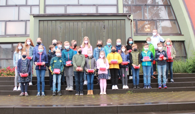 Während die Schülerinnen und Schüler mit ihrer neuen Klassenleitung in den neuen Klassenraum wechselten, blieben die Eltern in der Kirche bzw. Turnhalle, um eine Vielzahl an Hinweisen und Informationen zum Schulstart zu erhalten. Nach knapp 90 Minuten kamen dann die Kinder wieder zurück und strahlten bis über beide Ohren. Hatten bei der Eingangsfrage von Herrn Borys noch einige Kinder zugegeben, dass sie in der Nacht zuvor nicht sehr gut geschlafen hatten, waren sich jetzt alle Anwesenden sicher, dass die in der nächsten Nacht ganz beruhigt einschlafen konnten.