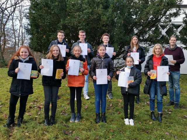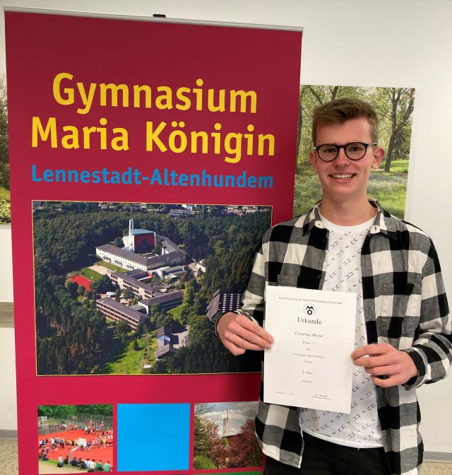 Am Ende der diesjährigen Regionalrunde durfte sich bei uns am Gymnasium Maria Königin Cornelius Mester (Stufe Q1) über einen ersten Platz freuen. Er wird somit mit drei weiteren Schülerinnen und Schülern anderer Schulen den Kreis Olpe in der Landesrunde der Matheolympiade vertreten. Für diese dritte Runde, die Anfang 2022 in Bielefeld ausgetragen wird, wünschen wir Cornelius Mester, sowie den weiteren Vertretern des Kreises Olpe viel Glück und Erfolg. In der 2. Runde konnten sich die Schülerinnen und Schüler mit über 50 Teilnehmern der anderen Gymnasien des Kreises Olpe während einer dreistündigen Klausur messen. Ferner durften sich bei uns Mathilda Sühwold (Klasse 5) und Jonathan Bräutigam (Stufe Q1) über einen zweiten Platz freuen. Die dritten Preise gingen an Denise Bause (Klasse 5), Jule Ramm (Klasse 5), Stephanie Sayess (Klasse 5), Nora Kramer (Klasse 6), Maja Menne (Klasse 6), Lya Bourgund (Klasse 8), Lina Reifenberg (Stufe Q1) und Max Henrichs (Stufe Q2).