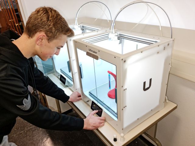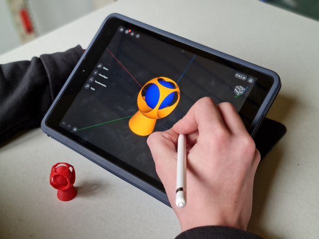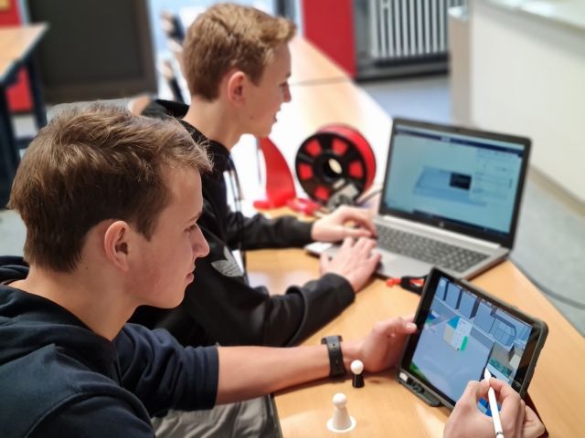 Einen jahrgangsstufenübergreifenden Schwerpunkt im Bereich Technik stellt der 3D-Druck dar. Hierzu wurden bereits vier 3D-Drucker angeschafft. Weitere sechs Drucker folgen in den nächsten Monaten. Erste Erfahrungen mit dem 3D-Druck können die Schülerinnen und Schüler in der 3D-Druck AG sammeln, die seit zwei Jahren in der Jahrgangstufe 8 angeboten und von Oberstufenschülern betreut wird. Der 3D-Druck wird zudem in der JIA und im Fach Technik in der Oberstufe als Fertigungsverfahren im Bereich Produktentwicklung und Konstruktion eingesetzt. Auch im Projekt DigiMath4EDU, das derzeit in Kooperation mit der Universität Siegen stattfindet, wird der 3D-Drucker im Fach Mathematik als zentrales Werkzeug verwendet. Zur Erstellung von 3D-Modellen wird in der 3D-Druck AG seit diesem Jahr das iPad eingesetzt, das ab dem kommenden Schuljahr allen Schülerinnen und Schülern von MK als eigenes digitales Arbeitsmedium ab Klasse 7 zur Verfügung steht. Die ersten Erfahrungen haben gezeigt, dass durch die intuitive Bedienung der Software mit Stift und Finger, schon mit wenigen Handgriffen erfolgreich anspruchsvolle Modelle erstellt werden konnten. Besonders motivierend für die Teilnehmer des Kurses ist, dass sie ihr 3D-Modell auf dem iPad mit nach Hause nehmen können, um ganz flexibel daran weiterzuarbeiten oder bei einem Geistesblitz ganz spontan ein neues 3D-Modell erstellen zu können.