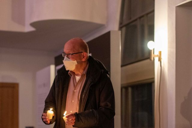 Hannah Tillmann und Alexander Sieler gaben mit einer passenden Liedauswahl dem Gebet einen musikalischen Rahmen. Eindrucksvoll wurde mit einer Kerzenaktion auch darauf hingewiesen, dass nicht nur in der Ukraine Krieg herrscht, sondern noch in dreißig anderen Regionen der Welt.