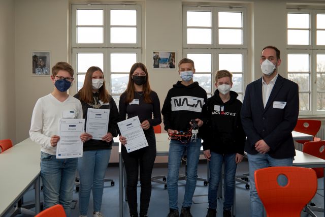 Fünf Schülerinnen und Schüler des Gymnasiums Maria Königin nahmen im letzten halben Jahr am kooperativen Projekt MINT-Pro²Digi der Universität Siegen teil. Im Rahmen dieses Projekts wird den Teilnehmenden Schülerinnen und Schülern die Möglichkeit geboten, an authentischen mathematisch-technischen Problemstellungen von Unternehmen aus der Region zu arbeiten.