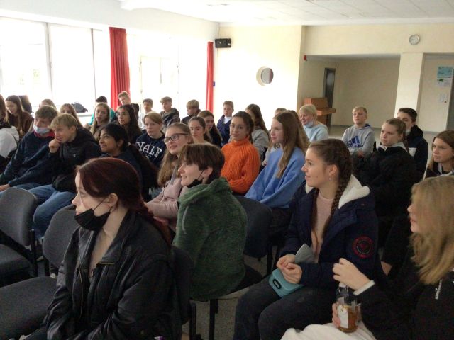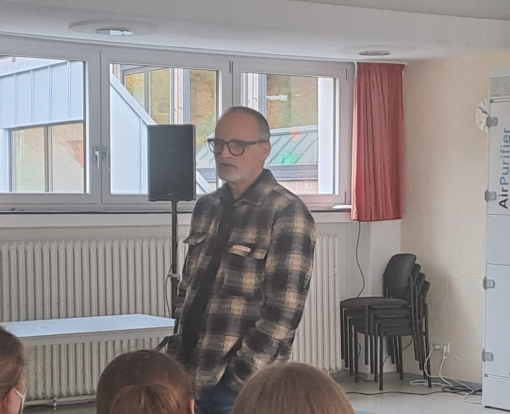 Es ist Montag, der 07.11.2022, als sich die Türen unseres Konferenzsaales für die Welt der Geschichten öffnen: Den Vorlesetag an unserer Schule. Schülerinnen und Schüler der Klassen 8 dürfen heute Vormittag zu Gast sein bei Herrn Christoph Wortberg, der nicht nur Geschichten erfindet und hauptsächlich Jugendromane verfasst. Er erzählt auch von seinem Leben als Schauspieler und den damit verbundenen Hürden, Sorgen und Ängsten. Das ist toll, denn so sind wir hautnah mit dran an seinem Leben und können das, was er uns aus erster Hand über seinen Berufswechsel erzählt, verstehen und begreifen.
