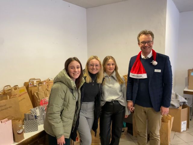 Was kann ein einzelner tun angesichts von wachsender Armut? Schülerinnen und Schüler der Stufe Q2 hatten bereits im Rahmen der Projektwoche im vergangenen Schuljahr die Aktion Warenkorb kennengelernt. Aus diesen Eindrücken heraus ist, gerade angesichts der finanziellen Nöte mancher Familien aufgrund des Krieges in der Ukraine, der hohen Inflation und der stark gestiegenen Energiepreise in Deutschland, der Wunsch erwachsen, zu helfen. In einer ersten Sammelaktion wurden Kleidung, Sneaker usw. gesammelt. Im Rahmen einer Exkursion des LK Sozialwissenschaften wurden diese Spenden im Oktober übergeben und die Schülerinnen und Schüler hatten die Möglichkeit sich beim Warenkorb zu engagieren. Der Wunsch zu helfen blieb weiter bestehen und so entwickelte sich die Idee, Weihnachtsgeschenke für die 11-16jährigen Kinder und Jugendlichen zu sammeln. Die DRK-Kita „Schatzkiste“ organisiert seit einigen Jahren Geschenke für die jüngere Kinder.