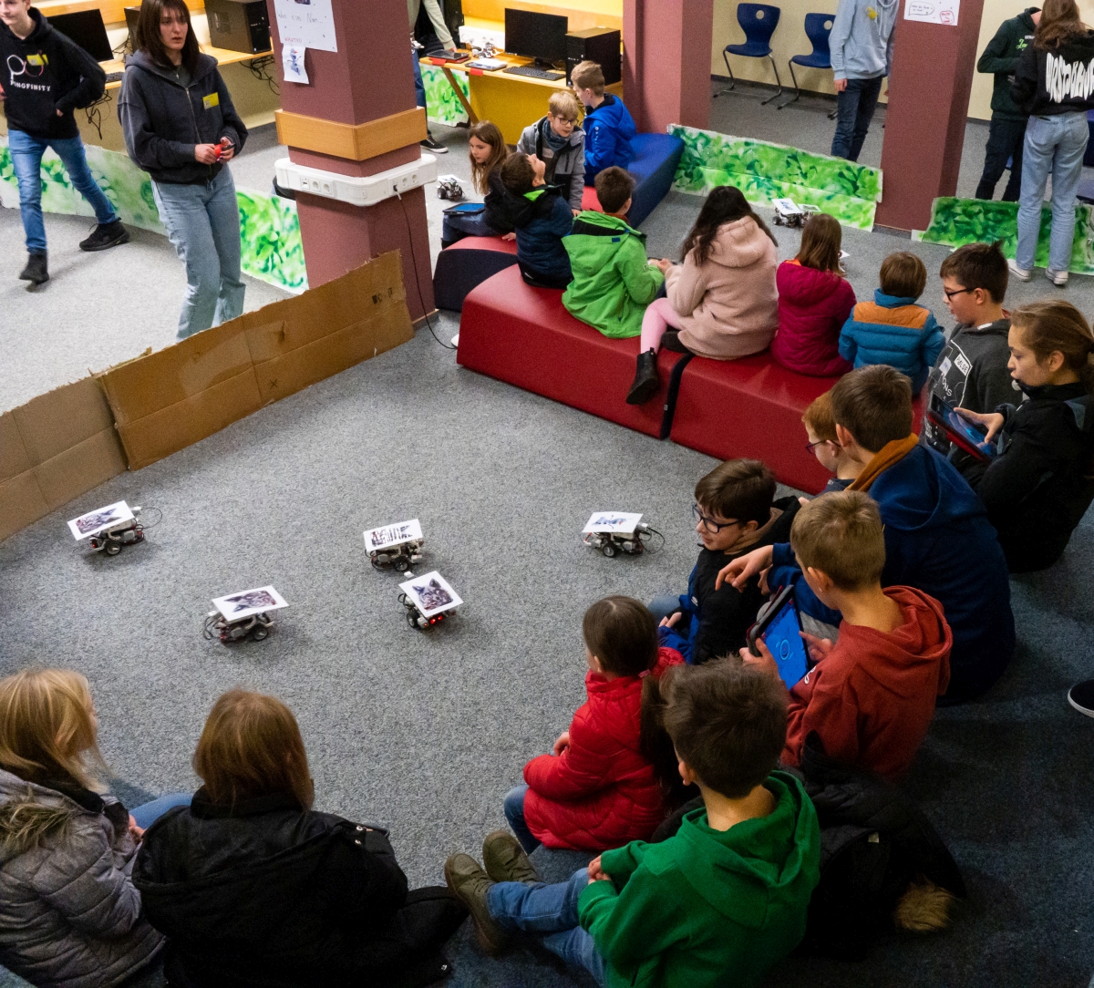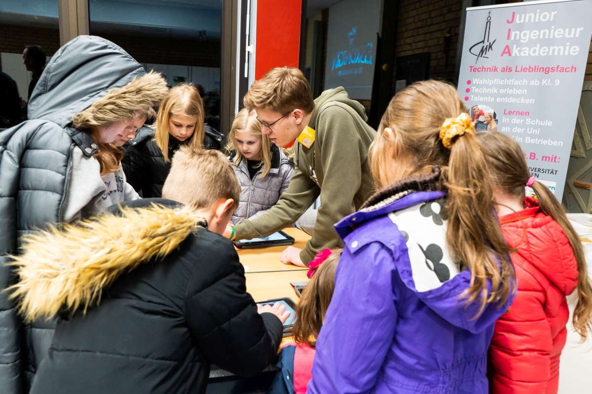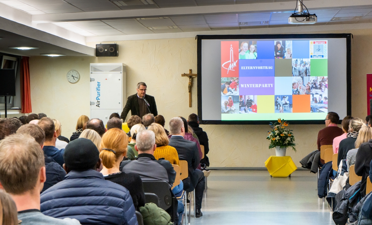 Ergänzend zum Tag der offenen Tür gab es in diesem Jahr einen Abend mit einer Informationsveranstaltung für die Eltern und einer „Winterparty“ für die Kinder. Der Elternvortrag war bereits im letzten Jahr auf einem Abend ausgelagert worden. So konnten die Schulleitung und einige Lehrer die Eltern ausführlich über die verschiedenen Aspekte des Schulwechsels und die Besonderheiten an Maria Königin informieren. Für die Kinder gab es gleichzeitig ein Betreuungsangebot mit dem Schneemann „Olaf“ aus der „Eiskönigin“, dem sie begeistert über verschiedene Stationen folgten. Sie konnten unter anderem Musik machen, mit Hilfe des 3D-Drucks kleine Olafs gestalten, an einem Quiz teilnehmen und an einem Wettbewerb mit Lego-Robotern teilnehmen. Die große Beteiligung von Eltern und Kindern und die Begeisterung vor allem der kleinen Gäste war deutlich spürbar. Am eigentlichen Tag der offenen Tür hatten die Eltern dann auch ausreichend Zeit, sich die Schule anzusehen. An der Vorbereitung des Abends war neben einigen Lehrern besonders die SV beteiligt. Einen schönen Eindruck des Abends bieten die tollen Fotos von Carolin Geisler.