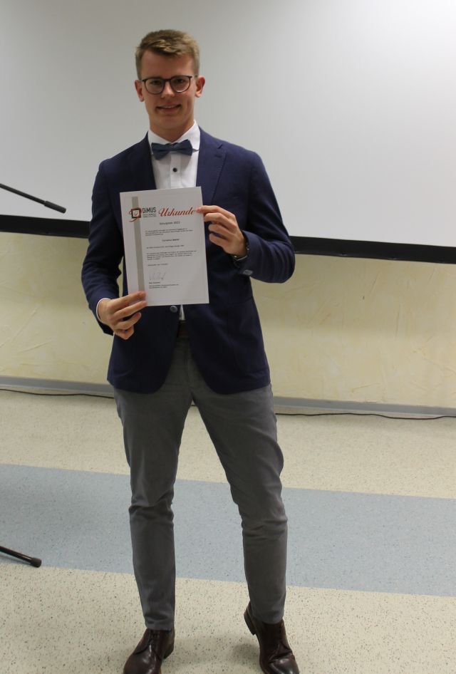 Mit Bezügen zu Karl May garnierte Christiane Schell ihre Laudatio für Cornelius Mester, da dieser schon als Kind bei den Elsper Festspielen aktiv gewesen ist. Cornelius habe sowohl bei der Mathematik-Olympiade als auch beim Känguru Wettbewerb in seiner Schulzeit durchgehend teilgenommen und immer auch Preise gewonnen. Besonders hob sie neben dem Leistungsvermögen das Engagement von Cornelius in der SV und als Schülersprecher hervor. Dabei habe er das Projekt „Digitalisierung an MK“ intensiv begleitet und auch einen Erste-Hilfe-Kurs für alle Schüler angeregt, geplant und umgesetzt. In seiner Freizeit sei er zudem in der Feuerwehr, im Musikverein und in der Kirchengemeinde aktiv.