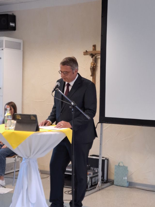 Schulleiter Fabian Borys hatte zuvor in seiner Begrüßung an die Leistung von Dieter Mennekes erinnert, der „schon früh Visionen hatte, die er hier in das Sauerland brachte, weit bevor der Blick auf den Umweltschutz auch in der Breite der Bevölkerung angekommen war.“ Mit Blick auf die Klimakrise erklärte er, dass „nachhaltige, intelligente Konzepte notwendig seien, die umweltschonende Prozesse und Kreisläufe berücksichtigen und auf nachfolgende Generationen ausgerichtet sind.“