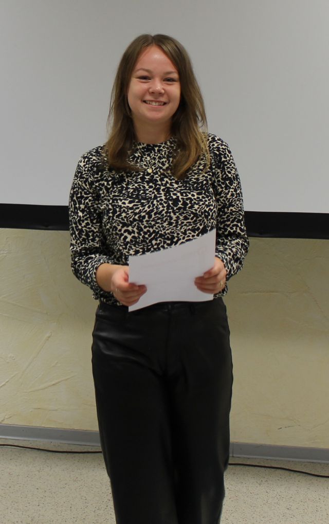 Vielfältig engagiert ist Karlotta Arens, die Ansgar Kaufmann würdigte. Karlotta habe sich über die gesamte Schullaufbahn in der SV für die Interessen der Schülerinnen und Schüler eingesetzt und viele kreative und neue Ideen eingebracht und umgesetzt. So hat sie bereits 2021 dafür gesorgt, dass am Gymnasium Maria Königin „kostenlose Hygieneartikel und Menstruationsprodukte bereit gestellt“ wurden. Damit sei die SV der Schule Vorreiterin einer wichtigen Bewegung gewesen. Ihr großes Organisationstalent habe Karlotta auch bei verschiedenen sozialen Aktionen der letzten Jahre gezeigt. Als ihr Deutsch LK-Lehrer berichtete Kaufmann: „Wenn es an die Korrektur ihrer Klausuren ging, konnte ich den Rotstift zunächst einmal beiseitelegen.“ Schließlich setze sich Karlotta auch als Fußballtrainerin, im Tambourkorps und in der Kirchengemeinde ein.