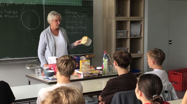 Unsere Schule hat jetzt erstmalig in den Klassen 9 das neue Präventionsprojekt „Es(s) geht um mehr“ durchgeführt. Der erste Teil des Projektunterrichts wurde in Kooperation mit der Siegener Einrichtung „La Vie – Entwicklungsräume für Menschen gGmbH“ durchgeführt. In den letzten Jahren, zusätzlich verstärkt durch die Corona-Pandemie, haben psychische Belastungen von Jugendlichen deutlich zugenommen. Auch die Zahl von Jugendlichen mit problematischem Essverhalten ist stark angestiegen. Genau hier setzt La Vie mit gezielten Präventionsangeboten an den Schulen an, denn problematisches Essverhalten beginnt meist im Jugendalter. Neben persönlichkeitsbedingten Faktoren kann sozialer Druck durch übertriebene Schönheits- und Leistungsideale das Selbstwertgefühl der jungen Menschen stark beeinträchtigen und zu Unsicherheiten bei der Wahrnehmung des eigenen Körpers führen. Die frühzeitige Förderung schützender Faktoren ist daher bedeutsam.
