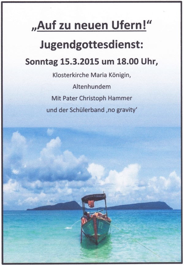 Jugendgottesdienst am 15.3. um 18 Uhr