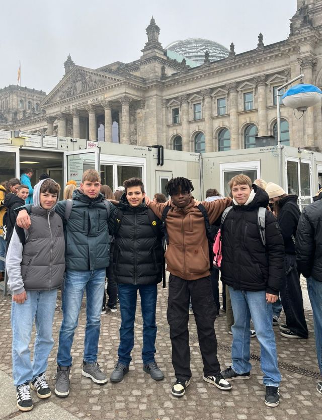 Schülerinnen und Schüler aus den 9. Klassen des Gymnasiums Maria Königin trafen in Brandenburg Anfang November eine polnische Klasse ihrer Partnerschule, der Gemeinschaftsschule Nr. 96 aus Otwock. Sie spielten zusammen, erkundeten die Stadt Storkow in einer Stadtrallye mit kreativen Aufgaben und drehten gemeinsam einen Trickfilm zum Thema „Natur“. Ein Höhepunkt war der Tagesausflug nach Berlin mit Besteigung der Reichstagskuppel und Besichtigung der Denkmäler entlang der Straße „Unter den Linden“ bis zum Alexanderplatz. Sie führen die jüngere deutsche Geschichte in einprägsamen Bildern vor Augen.