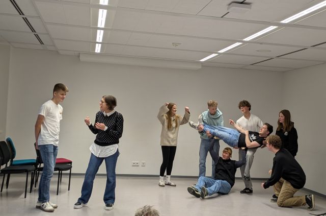 Nach der Anreise mit der Bahn am frühen Freitagmorgen begann das Programm mit einem dreistündigen Theaterworkshop, durchgeführt durch das English Theatre Frankfurt. Die beiden Theaterpädagogen und englischen Muttersprachler Nate und René führten die Schülerinnen und Schüler mit abwechslungsreichen Übungen zu Teambuilding, szenischer Darstellung und Improvisationstheater an das Schauspiel heran. Die Begeisterung der beiden Profis steckte alle Teilnehmenden an und sorgte für eine entspannte und humorvolle Atmosphäre.