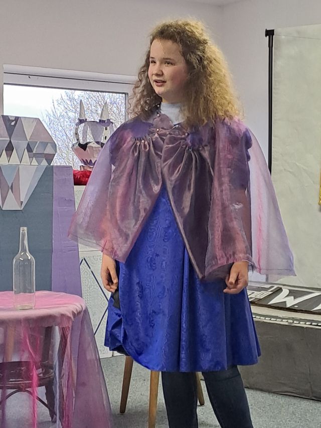 Auch Lea-Sophie, die Karfunkula spielt, verfügt bereits über Theatererfahrung. Sie hat in der Grundschule schon in einem Musical mitgespielt. „Das besondere an meiner Rolle ist, dass ich böse tun muss, obwohl ich das selbst ja gar nicht bin,“ erklärt sie mit einem Augenzwinkern.