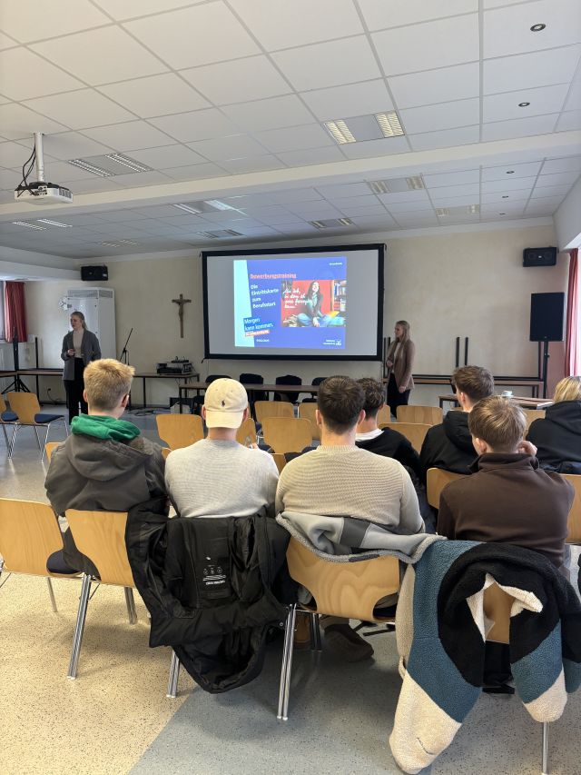 Zu guter Letzt schulten Frau Iarossi und ihre Kollegin von der Volksbank Sauerland eG die Schülerinnen und Schüler im „Bewerbertraining“. Dabei setzten sie zum einen den Fokus auf Bewerbungsunterlagen, wie das Anschreiben oder den Lebenslauf (CV) und gaben dabei wichtige Tipps und Tricks zu passenden Formulierungen. Ein weiterer Schwerpunkt lag auf dem Bewerbungsgespräch mit häufig gestellten Fragen und möglichen „Fallen“.