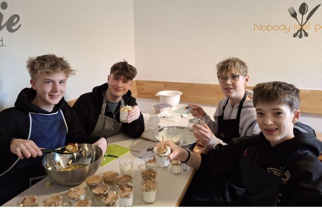 Mit diesen tollen Rezepten haben die Schülerinnen und Schüler gemeinsam ein besonderes „Ess-Erlebnis“ schaffen können. Das Schlemmen und Genießen nach getaner Arbeit war dabei natürlich das Allerschönste! Die leicht gelingenden, vollwertigen Rezepte können zukünftig auch zuhause nachgekocht werden. Dazu gibt es für jede Klasse ein Rezeptheft mit Fotos vom Kochevent.