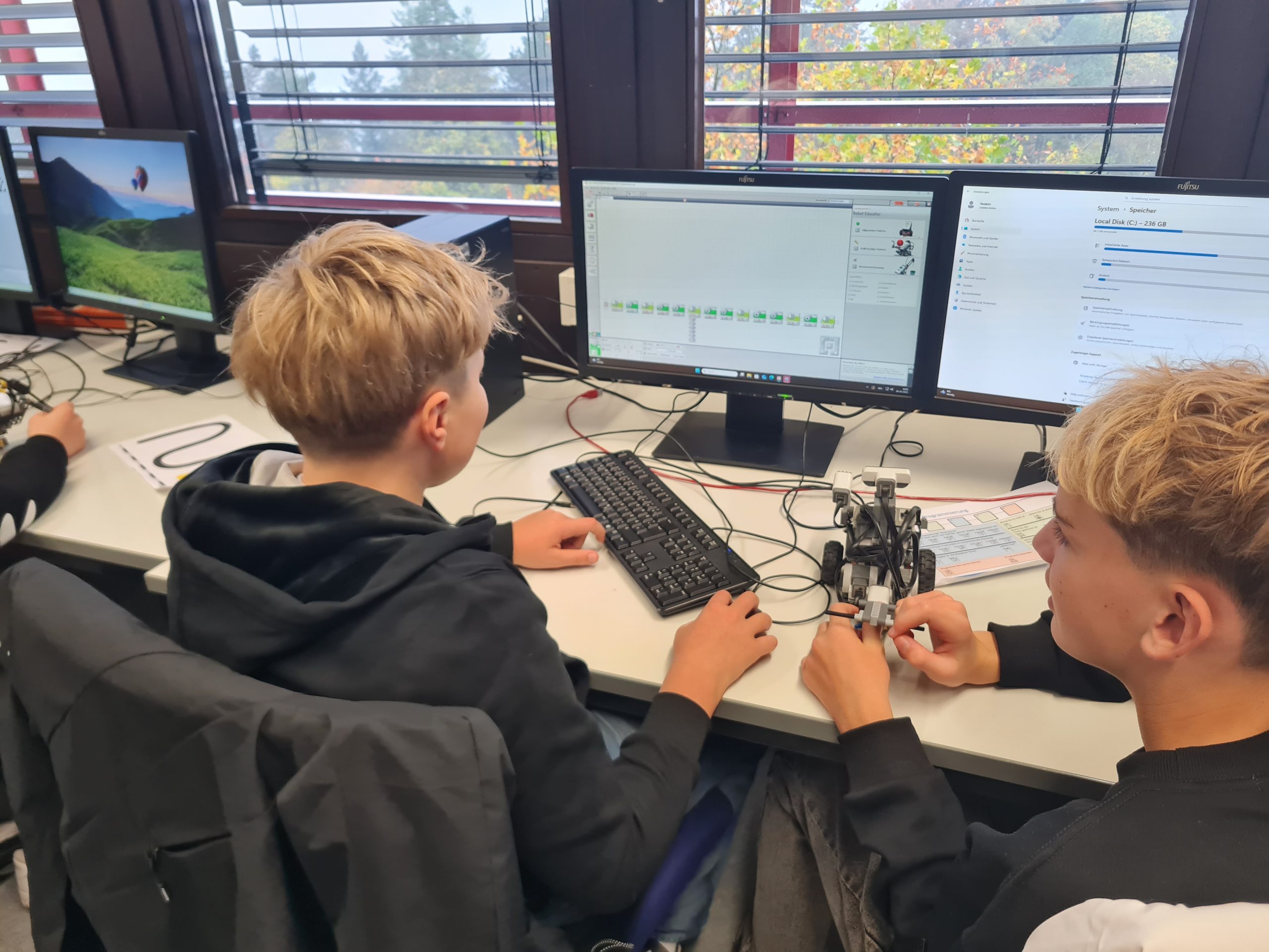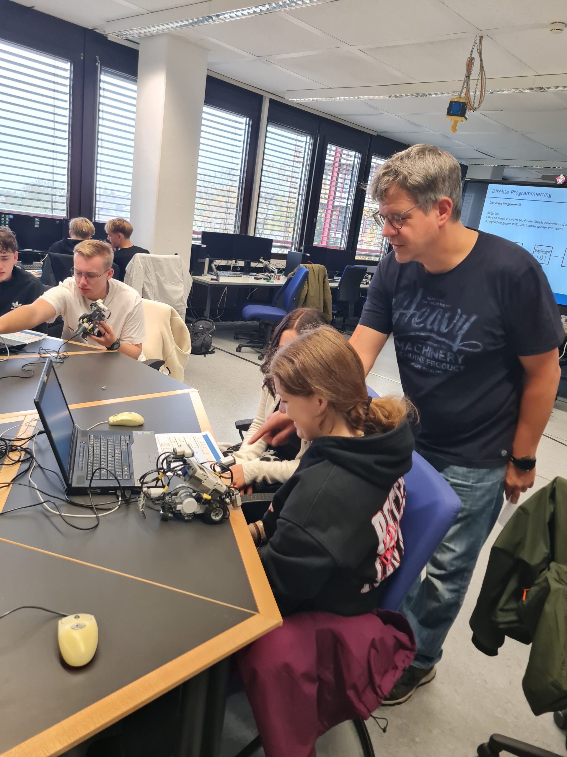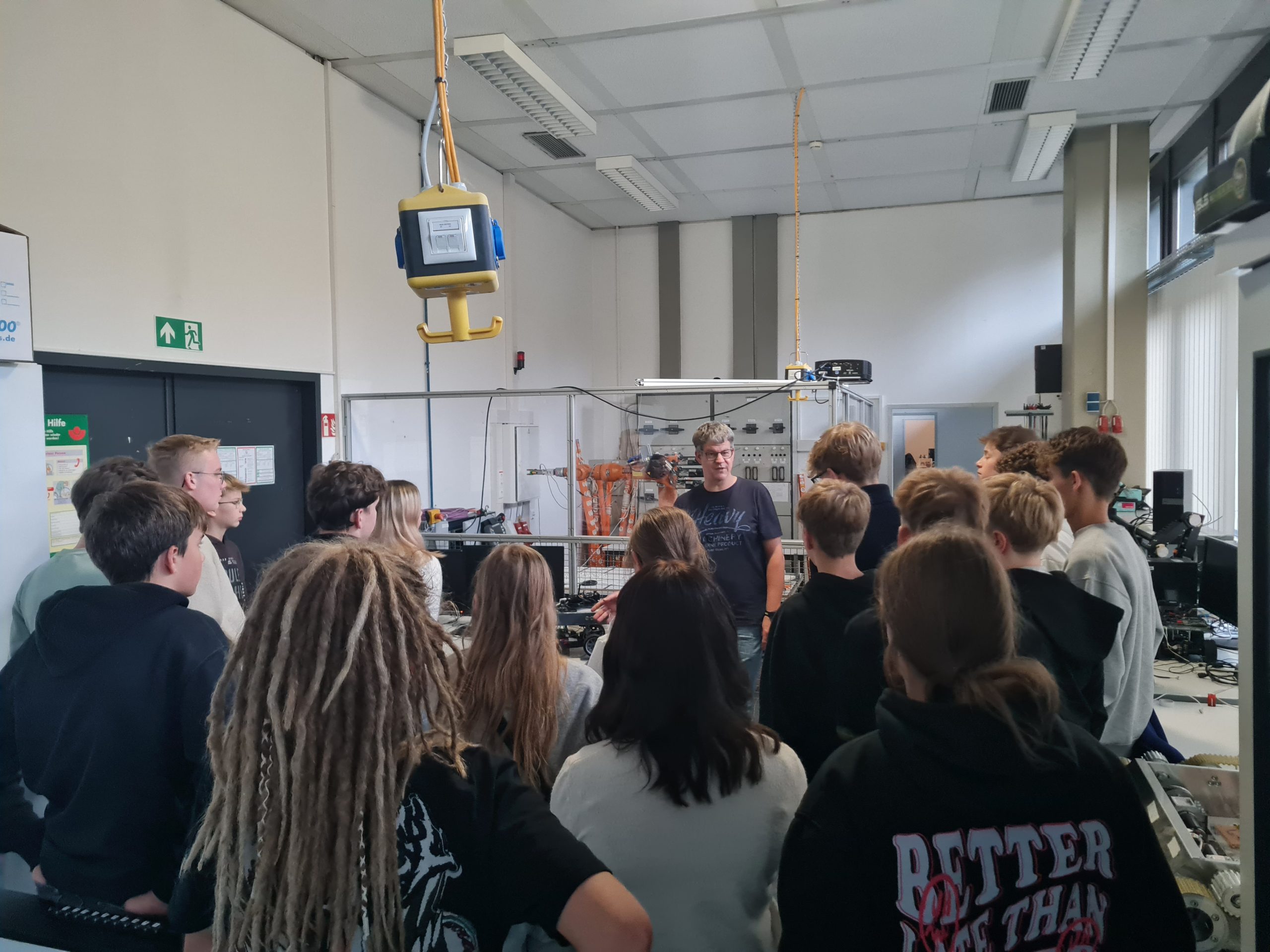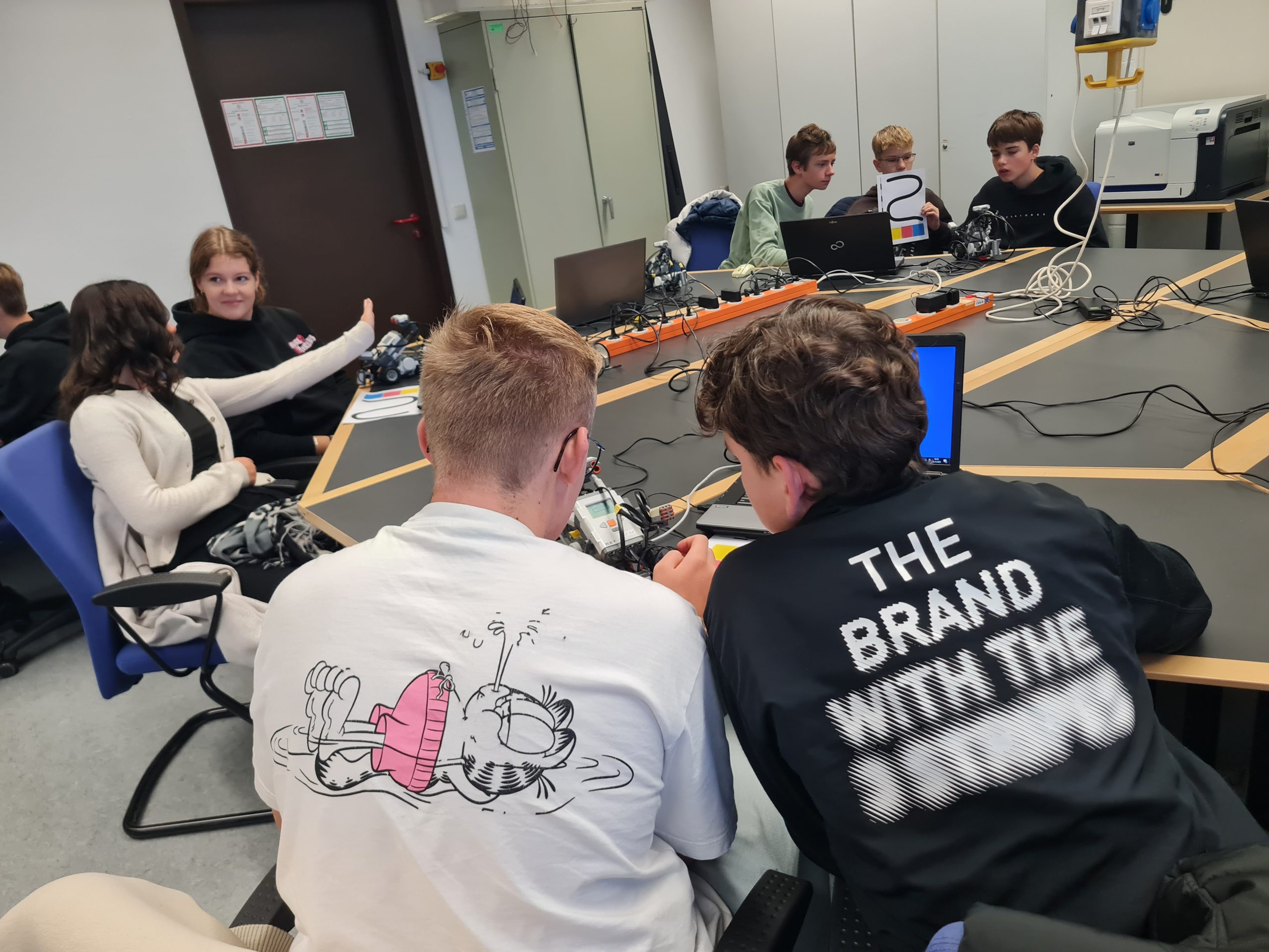 Die Schülerinnen und Schüler unserer Junior Ingenieur Akademie der Jahrgangsstufe 9 durften einen spannenden Tag an der Universität Siegen erleben! Im Robotik-Workshop programmierten sie eigene NXT-Roboter, lernten Sensoren, Aktoren und die Programmierumgebung kennen. Bei einer anschließenden Laborführung bekamen wir beeindruckende Einblicke in die Robotik-Forschung: von präzisen Industrierobotern bis hin zu riesigen Drohnen, die von Studierenden selbst entwickelt und gebaut wurden.