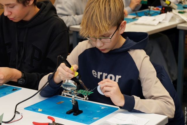 An zwei Tagen fand an unserer Schule ein Löt-Workshop mit Herrn Prof. Dr. Denis Anders von der Technischen Hochschule Köln statt. Der Workshop wurde von der Junior Ingenieur Akademie der Jahrgangsstufe 9 belegt, die sich im Moment mit den Themen Elektrotechnik und Robotik beschäftigt. Herr Anders und sein Team unterstützen uns bereits seit vielen Jahren in unterschiedlichen Projekten – eine zuverlässige und wertvolle Kooperation, die sich kontinuierlich weiterentwickelt hat. Finanziert wurde der Workshop durch das zdi Kreis Olpe.