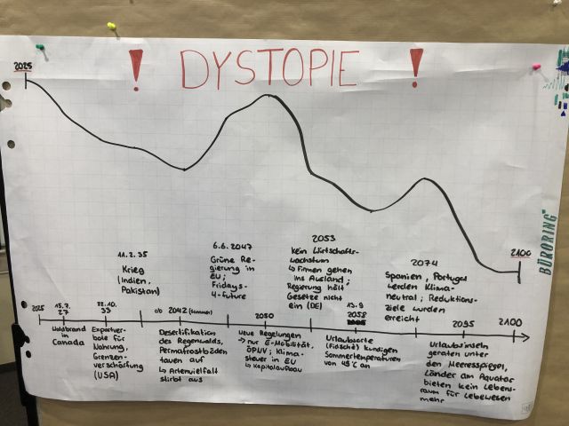 Wir entwarfen Utopien und Dystopien für unseren Planeten bis in das Jahr 2100, diskutierten z.B. über ein Tempolimit in Deutschland und erarbeiteten spielerisch Zusammenhänge zwischen globalem Bevölkerungswachstum, Einkommensunterschieden und CO2-Emissionen.