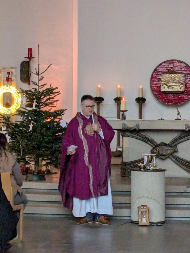 In vorweihnachtlichen Gottesdienst der Oberstufe wurden Bilder der Aktion gezeigt und Pater Siegfried Modenbach rief dazu auf, dem Beispiel der Engel zu folgen und Freude weiterzugeben.