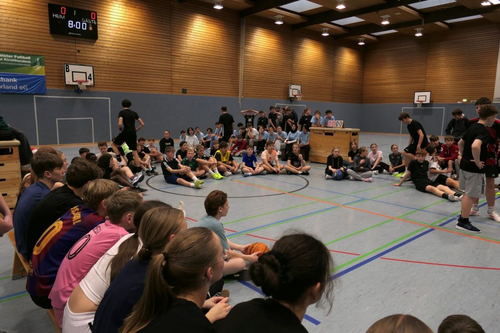 Beim diesjährigen Nikolaus–Basketball-Turnier der 8. Klassen waren drei Klassen vom Städtischen Gymnasium Lennestadt, vier Klassen der Sekundarschule aus Meggen und Kirchhundem, zwei Klassen der Lessing-Realschule Grevenbrück und drei Klassen unserer Schule dabei.