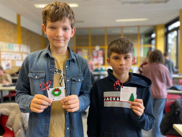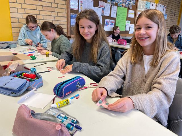 Über die einzelnen Spenden hinaus hat u.a. die Klasse 6b Weihnachtsanhänger gebastelt, die 7b Spiele gesammelt und die 10b verschiedene Gutscheine gespendet. die 10a hat die Tüten gepackt und die Q1 diese noch weiter dekoriert.