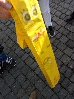 Das zweite Team mit Michel Rudnitzki, David Wolf, Bastian Rindler und Franceso Corvitto hatte die „Bikini Bottom Bridge“ an den Start gebracht. Bei einem Eigengewicht von 136g hielt die Brücke eine Belastung von 12,85kg aus, bevor die zulässige maximale Biegung erreicht wurde. Mit diesem tollen Ergebnis sicherte sich das Team den 2.Platz in dem 11 Gruppen starken Teilnehmerfeld. Dabei konnten die Vier auch noch mit einer gelungenen Dokumentation ihrer Arbeitsschritte und einem originellen und kreativen Design punkten. Diese beiden Faktoren wurden nämlich auch zu jeweils 15% in das Gesamtergebnis eingerechnet.
