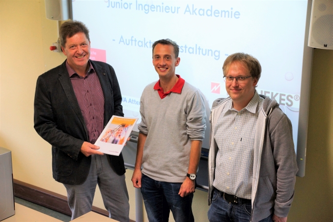 Im Rahmen einer Auftaktveranstaltung am Gymnasium Maria Königin wurde die Junior-Ingenieur-Akademie (JIA) am 18.09.2017 durch Schulleiter Berthold Schleime offiziell eröffnet. Im Anschluss stellten die zuständigen Fachlehrer André Bertels und Matthias Walter einen inhaltlichen Überblick der kommenden zwei Schuljahre vor.