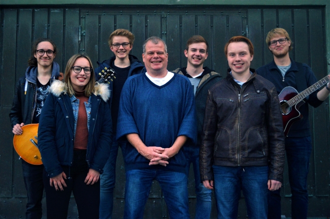 Dazu kommt die Musik, die die Botschaften der Lieder treffend untermalt. Eine Band aus ehemaligen und aktuellen Schülern begleitet den Lehrer, der selbst neben dem Gesang auch Bass spielt. Elise Brauer am Gesang, Benedikt Wüllner am Akkordeon, Dustin Modic am Keyboard, Felix Griese am Schlagzeug sowie Jan Schrüllkamp und Marius Albers an den Gitarren komplettieren die Band. Als Gäste werden Juliane Beckmann (Gesang) und Martin Berens (Percussion) die Band unterstützen.
