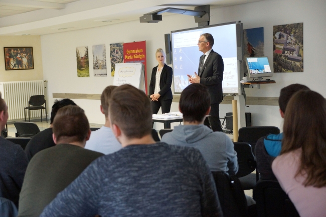 Beim Bewerbertraining, dem 2. Modul, durch Herrn Bernd Kramer von der Volksbank Bigge-Lenne ging es um praktische Fragen des Bewerbungsschreibens und vor allem des Vorstellungsgespräches. Mit vielen sehr anschaulichen praktischen Beispielen erläuterte Herr Kramer den Schülerinnen und Schülern, wobei es bei einer Bewerbung wirklich ankommt. Ein vertieftes Bewerbungstraining für Interessenten in den Räumen der Volksbank wird diesen Vortrag vertiefen.