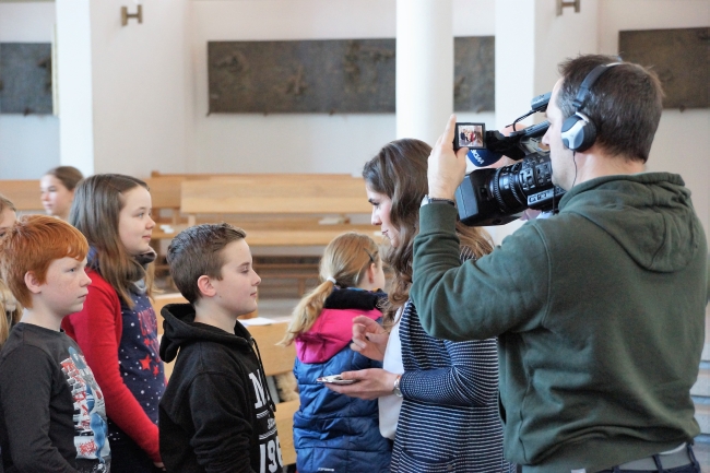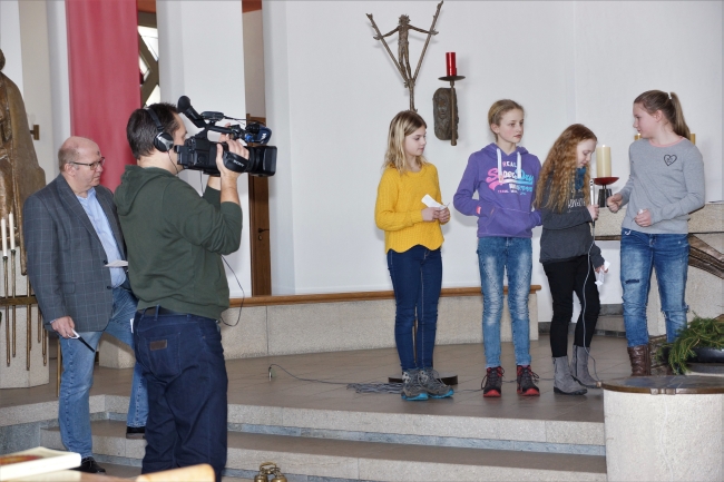 Zum Aschermittwochsgottesdienst der Klassen 5 und 6 war Herr Albrecht vom WDR Siegen heute an der Schule. Für die Lokalzeit hat er einige Aufnahmen von der Austeilung des Aschenkreuzes gemacht. Außerdem hat er Schüler und Schülerinnen der Klassen 5c und 6c interviewt. In drei Gottesdiensten haben fast 800 Schüler das Aschenkreuz empfangen und sich so auf die Fastenzeit eingestimmt.