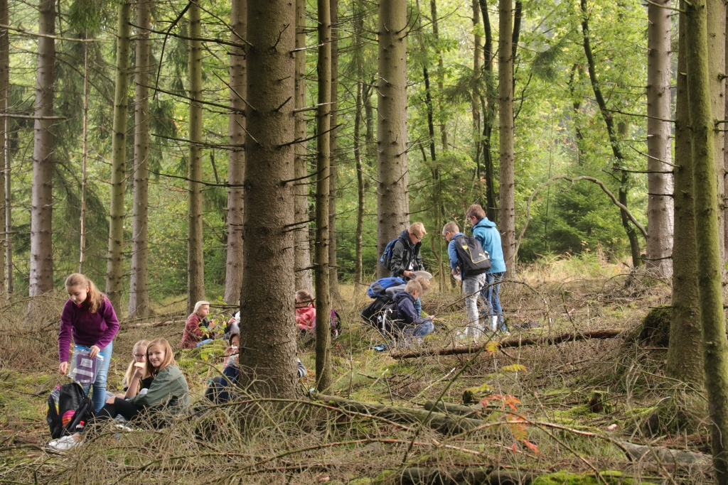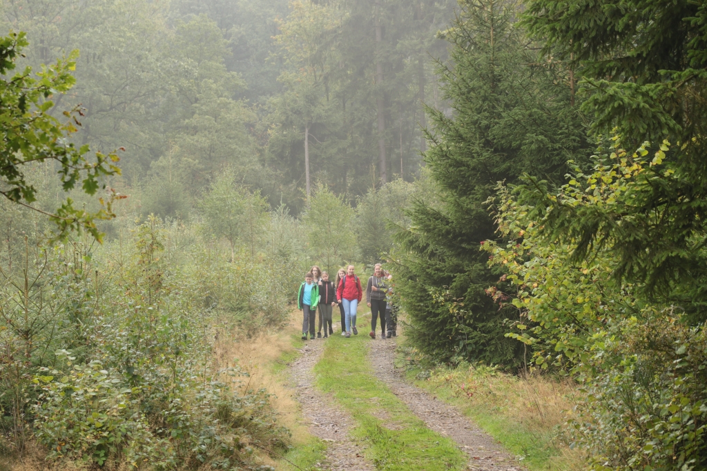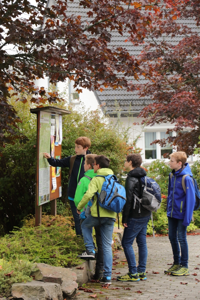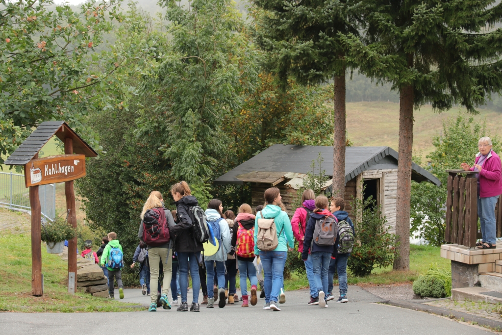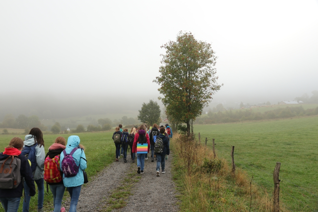 Ein großer Erdball als Symbol für die bedrohte Erde stand im Mittelpunkt der Wallfahrt des Gymnasiums Maria Königin zum Kohlhagen. Mehr als 700 Schüler und Lehrer pilgerten von unterschiedlichen Ausgangspunkten zum Marienwallfahrtsort, um dort gemeinsam mit Pfarrer Heinrich Schmidt den Namenstag der Schule zu feiern. Die Freude über die Schönheit der Schöpfung, aber auch die Sorge um die Zukunft unseres Planeten prägten den Gottesdienst. Mit der Aussage „Wir müssen alle ärmer werden!“ weist Papst Franziskus darauf hin, dass wir in den reichen Ländern nicht mehr so weiterleben können, wenn die Erde und die Menschen der Welt eine Zukunft haben sollen. Diese Gedanken nahm auch Pfarrer Schmidt auf und appellierte an die Schüler, sich einzusetzen. Dass diese dazu bereit sind, zeigten viele Vorschläge für konkrete Verhaltensänderungen, die die Klassen und Kurse auf dem Weg zum Kohlhagen gesammelt hatten. Dabei wurden u.a. genannt: Mehr Fahrrad fahren, Plastik-Müll vermeiden, Energie sparen, weniger Auto fahren, sich für Tierschutz und seltene Tierarten einsetzen und weniger Wasser verbrauchen. Diese Ideen, die als Blüten gestaltet gesammelt wurden, werden im Laufe des Schuljahres wieder aufgegriffen werden.