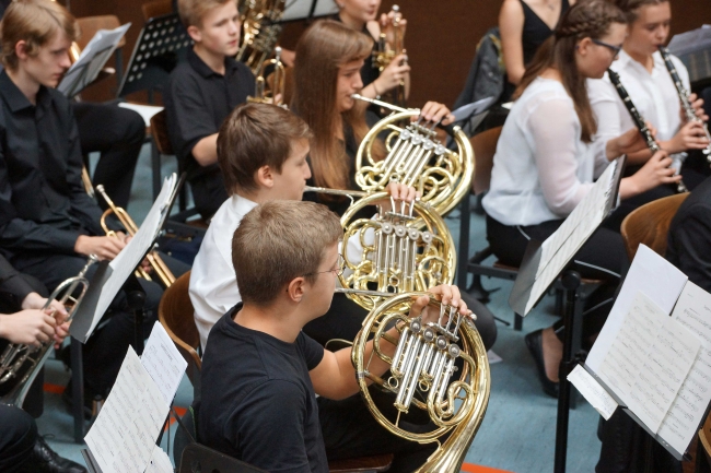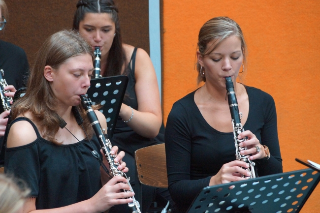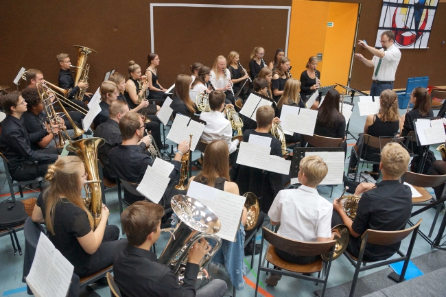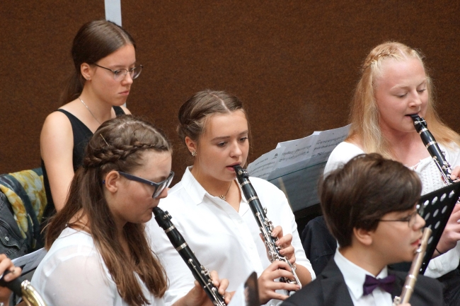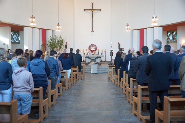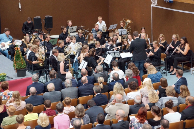Begonnen hatte der Festtag mit einem Gottesdienst, dem Pater Johannes Nies und Pater Adolf Reiners, beide auch ehemals in der Schulleitung von Maria Königin, vorstanden. Bereits im Gottesdienst waren Dank an die alte Schulleitung und gute Wünsche für die Neuen formuliert worden. Die vielfältige musikalische Gestaltung des Gottesdienstes übernahmen Hendrik Schörmann, Frederik Linn, Monika Lohmeyer und als Überraschung ein Lehrerchor. Beim Festakt in der Sporthalle zeigte einmal mehr das Orchester des Gymnasiums unter Leitung von Frederik Linn sein Können.
