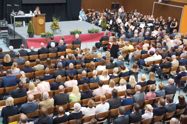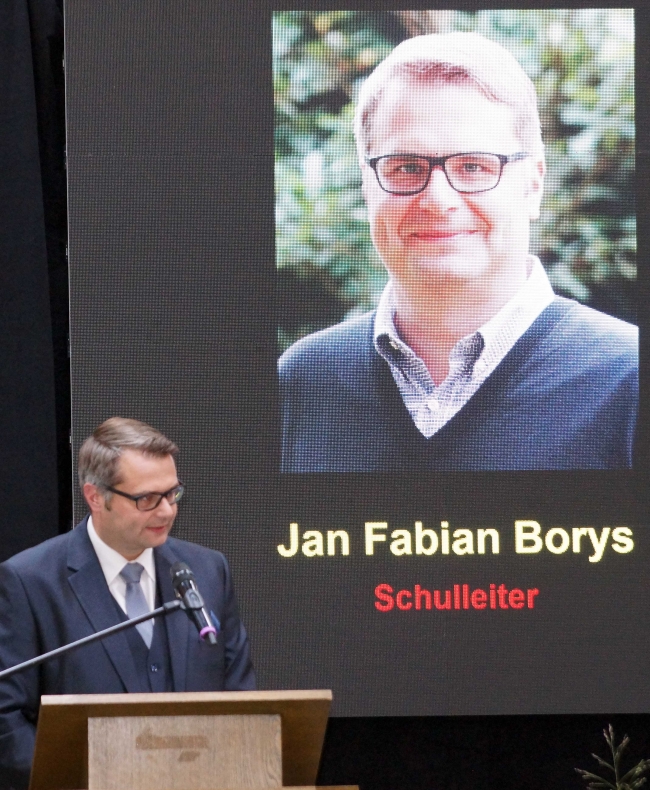 Und die abschließende programmatische Rede des neuen Schulleiters bestätigte diese Annahme nachdrücklich. Erziehung und Bildung auf der Grundlage des christlichen Menschenbildes und Kommunikation als Dreh- und Angelpunkt der Schulleitung waren zentrale Stichworte seiner Ansprache: „Ich freue mich auf die Zusammenarbeit und darauf, an diesem wunderbaren und außergewöhnlichen Ort zu leben, zu lernen, zu glauben und zu helfen“, nahm Borys Bezug auf das Motto des letztjährigen Schuljubiläums.