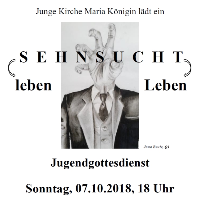 Zu einem Jugendgottesdienst unter dem Titel „Sehnsucht leben – Sehnsucht Leben“ lädt die Junge Kirche Maria Königin am Sonntag, dem 7. Oktober um 18 Uhr ein.