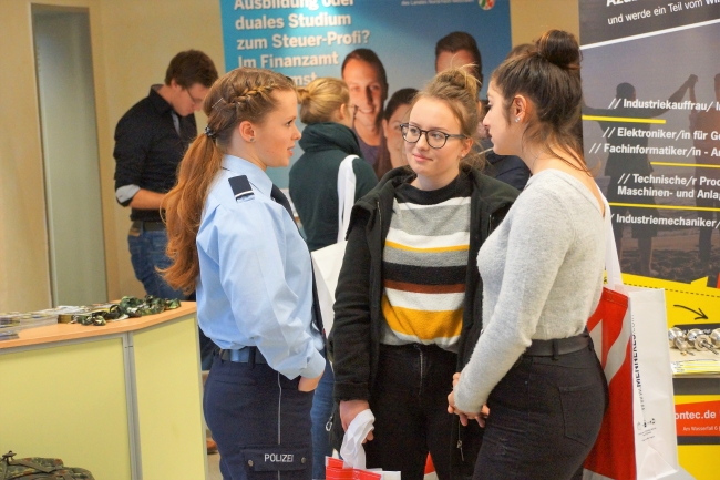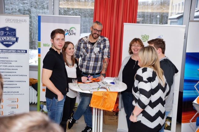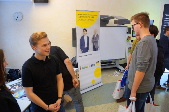 Eine Berufsmesse mit über 20 heimischen Arbeitgebern zeigte den Schülerinnen und Schülern die Vielfalt der Ausbildungs- und Studienmöglichkeiten im heimischen Raum. Mit großem Einsatz präsentierten sich die Firmen und Institutionen, um mögliche Interessenten für einen Ausbildungsplatz oder ein Duales Studium zu gewinnen.