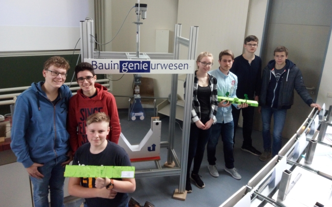 Am Freitag fuhren insgesamt sieben Schülerinnen und Schüler unserer Schule zur Finalrunde des Brückenbauwettbewerbs der naturwissenschaftlich-technischen Fakultät der Uni Siegen. Bei diesem Wettbewerb für Oberstufenschüler aus der Region Südwestfalen soll ein Brückenmodell nur aus Papier und Klebstoff gebastelt werden, welches in Geometrie und Material bestimmten Anforderungen entsprechen muss.