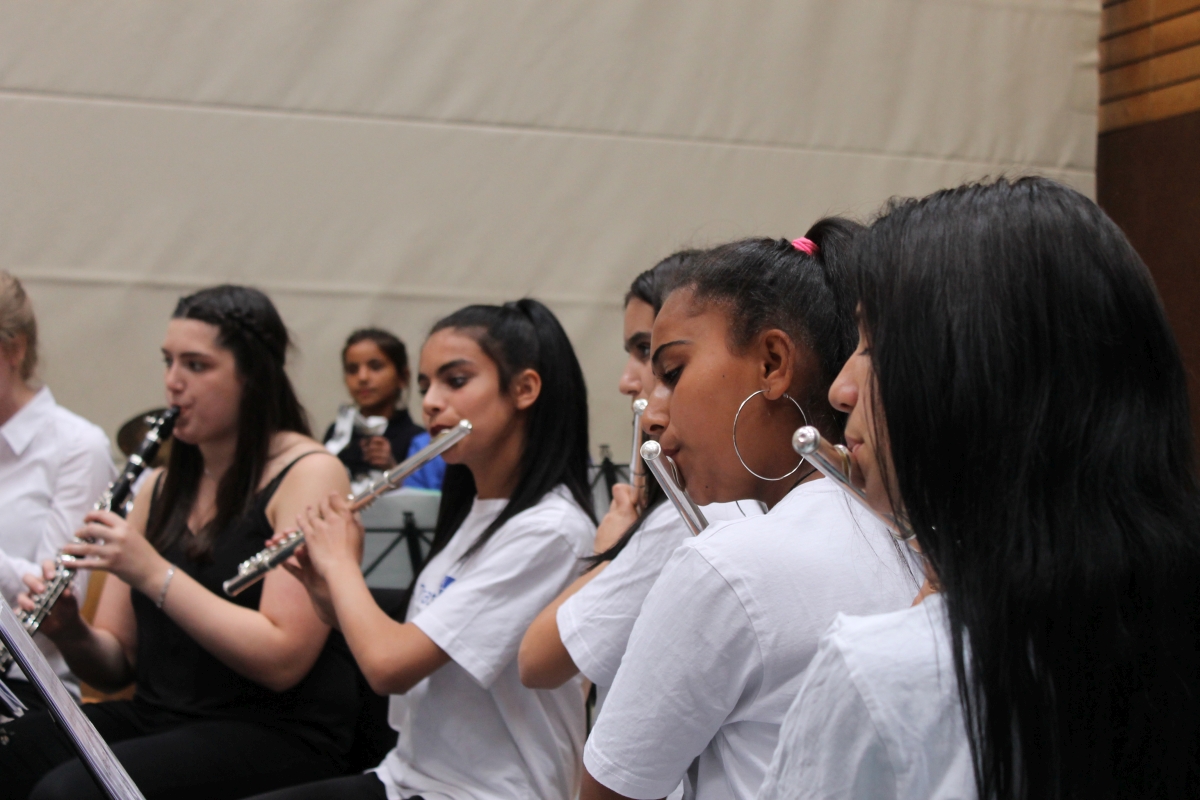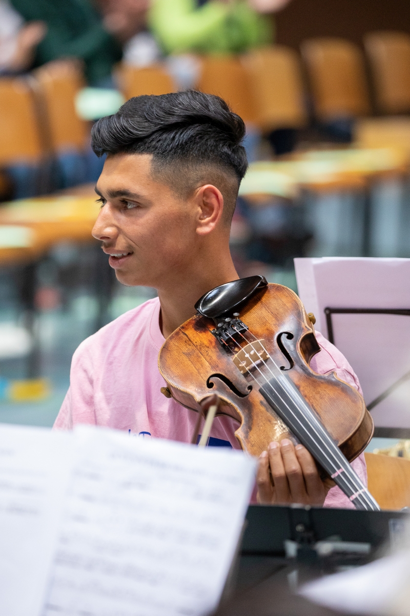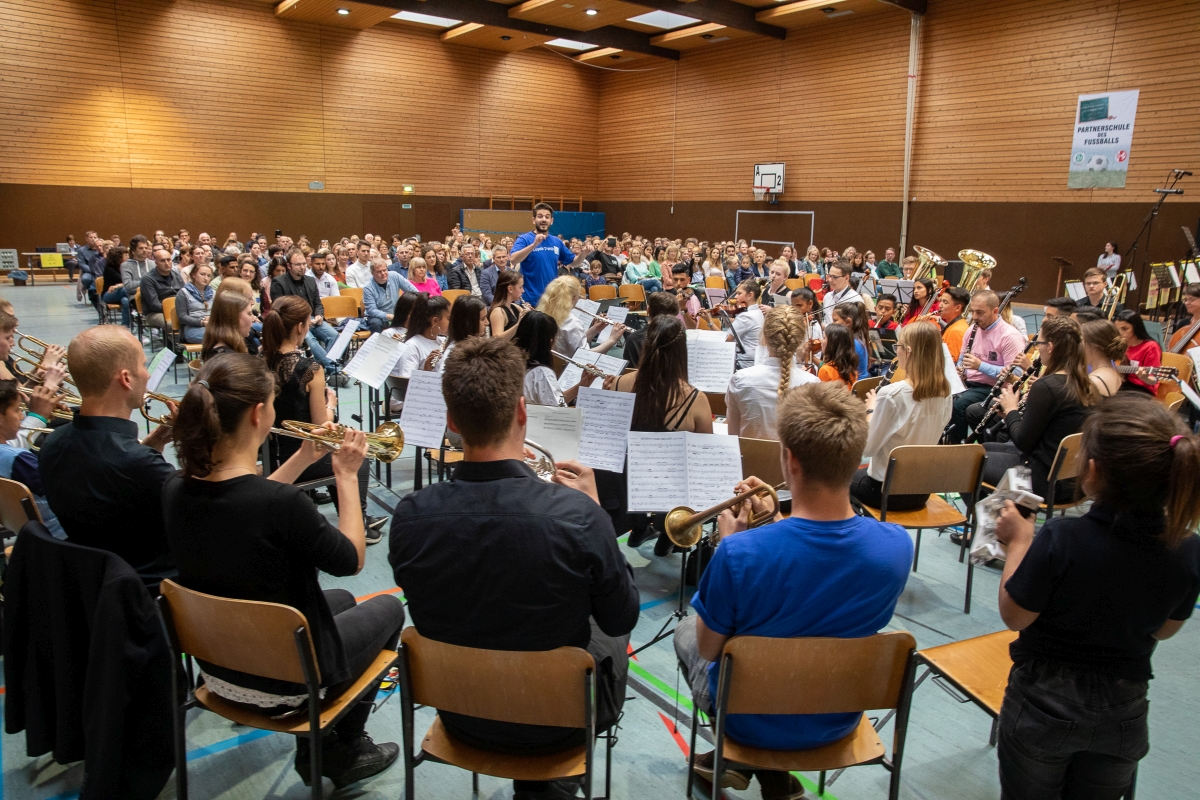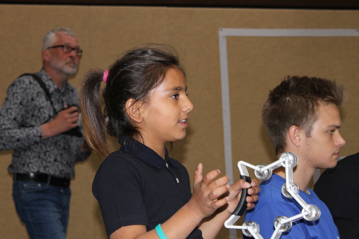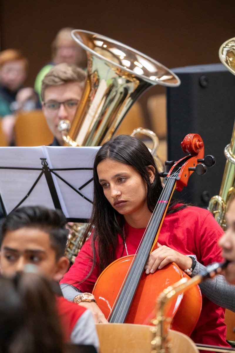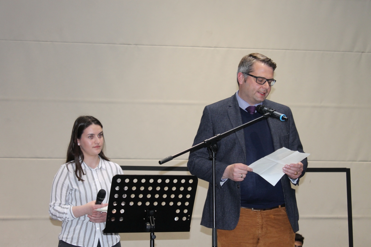 Im letzten Teil des Konzertes brillierten dann noch einmal die beiden Orchester mit dem „Zigeunerbaron“, Liedern aus dem Kosovo, dem „Queens Park Medley“ und dem Cup-Song, bei dem die Jugendlichen aus dem Kosovo den Rhythmus in Verbindung mit einer tollen Choreographie vorgaben. Moderiert wurde der Abend von den Schülerinnen Charlotte Assmann, Miriam Seidenstücker und Saranda Qyqalla, wobei letztere eine perfekte Übersetzung ins Albanische leistete und so auch den Gästen aus dem Kosovo das Verstehen ermöglichte.