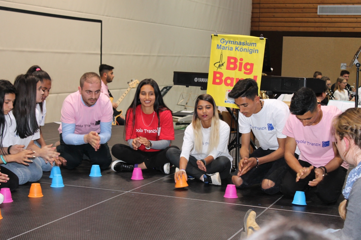„Das war ein wundervoller Abend, der die Lebensfreude und die Kraft der Musik deutlich machte.“ In dieser Einschätzung des Benefizkonzertes am Gymnasium Maria Königin waren sich Schulleiter Jan Fabian Borys und Martin Lenz vom Hilfswerk Renovabis einig und die fast 200 Zuhörer zeigten ihre Zustimmung immer wieder durch begeisterten Applaus. Ein abwechslungsreiches Programm boten das „Loyola-Tranzit-Orchester“ aus dem Kosovo unter Leitung von Rustem Gashi im Zusammenspiel mit dem Schulorchester von Maria Königin unter Leitung von Dr. Frederik Linn. Mit kosovarischen Volksliedern und Eigenkompositionen erfreuten Sie das Publikum genauso wie mit moderner Orchestermusik und dem krönenden Abschluss, dem Cup-Song.