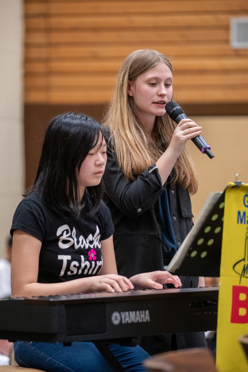 Auch die übrigen Mitwirkenden von der Junior-Band und der Big Band bis zu den Chorgruppen und Solosängern boten viele Facetten der Musik. So präsentierten Musiklehrer Hendrik Schörmann „I got plenty of nuttin“ aus „Porgy und Bess“ und Madeleine Wulff und Leah Hufnagel das Blumenduett von Leo Delibes. Die von Berthold Kresin geleitete Big Band und deren Sängerin Martha Ferreira-Seara sorgte für einen emotionalen Höhepunkt mit „My heart will go on“ und „Time after Time“. Ebenfalls mit Pop-Klassikern überzeugten der Vokalpraktische Kurs und die neu gegründeten MK-Singers. Mit „Angels“ von Robbie Williams und „We are the world“ von Michael Jackson und schließlich „Can you feel the love tonight” hatte Chorleiter Harald Jüngst mit seinen Schülern eine passende Auswahl getroffen.
