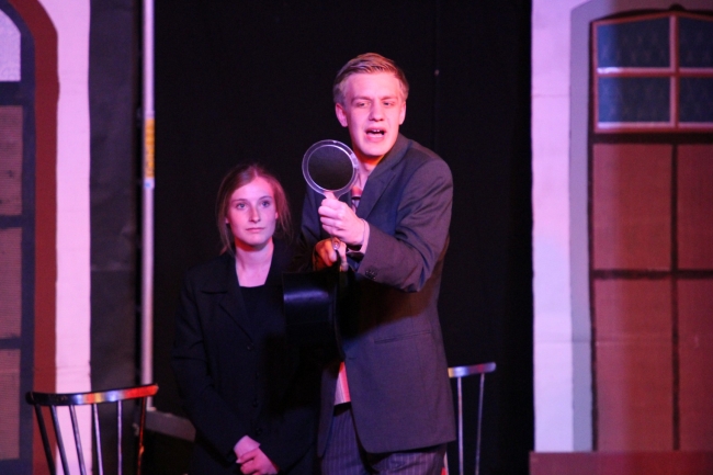 Den Besuchern der beiden Aufführungen von „Tod dem Drachen“ kam so manches in der phantastischen Geschichte doch sehr bekannt vor. Wenn der eine Diktator besiegt ist, findet sich sehr schnell ein neuer, dem man in gleicher Weise opportunistisch folgt wie seinem Vorgänger. Auch offensichtliche psychische Auffälligkeiten werden dem Herrscher verziehen, der zwar keine blonde Tolle trug, aber in seiner Unbeholfenheit und Skrupellosigkeit an den Führer einer Weltmacht erinnerte. Die Mechanismen von Macht und Machtmissbrauch, von Anpassung und Duckmäusertum wurden in dem Stück, das die Theater AG spielraum.unlimited des Gymnasiums Maria Königin nach einer Vorlage von Jewgeni Schwarz frei inszeniert hat, eindrucksvoll vorgeführt.