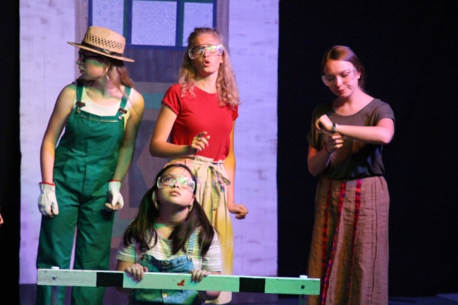 Den Drachen verkörperten Joshua Voßhagen, Kim Stahlhacke, Leah Hufnagel und Selinay Yazlak, als verhinderter Drachentöter überzeugte Kevin Spagnolo und Ella Pieper hütete als Archivarin auch ihre vier Töchter, im Wechsel dargestellt von Leonie Brado, Judith Schäfers, Marie Graw, Manon Umlauf und Carina Hebestreit. Souverän führten Selinay Yazlak und Jule Schirbel mit launigen Anmerkungen und Erläuterungen als Kater Carlo durch die Aufführung.