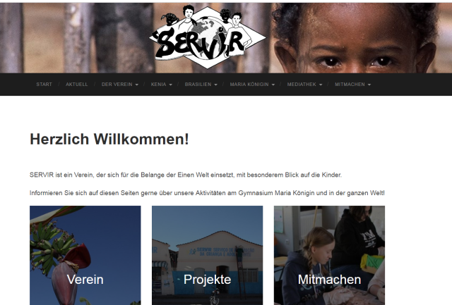 Im Verlauf des letztes Schuljahres haben sich viele Servir-Mitglieder um die Aktualisierung der Servir-Homepage bemüht. Ziel war es, die Seite übersichtlicher und moderner wirken zu lassen, Texte zu überarbeiten sowie die Foto- und Presseberichte zum Stöbern bereitzustellen. Überzeugen Sie sich selbst von dem tollen Ergebnis: www.servir.de