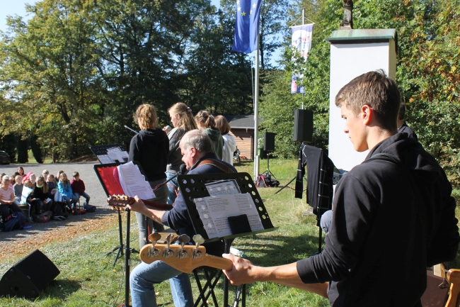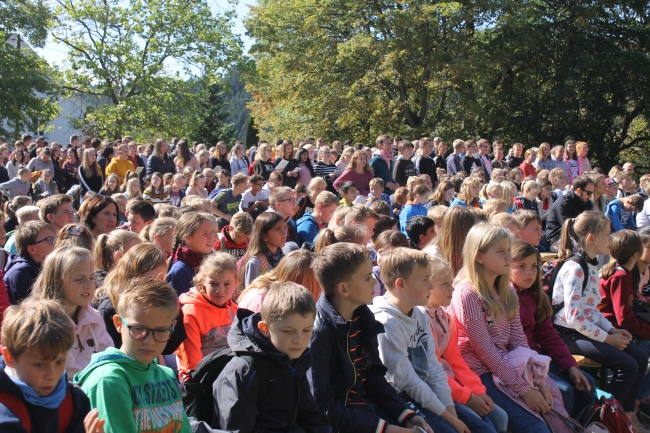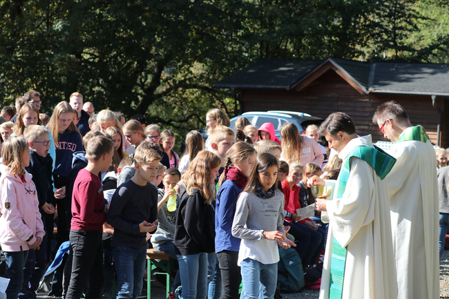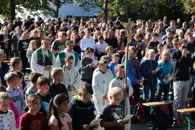 Bei strahlendem Sonnenschein feierten fast 700 Schülerinnen und Schüler, Lehrerinnen und Lehrer einen Gottesdienst auf dem Kohlhagen.