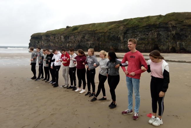 Zum zwölften Mal verbrachten 25 Schülerinnen und Schüler des Gymnasiums Maria Königin erlebnisreiche Tage in Ballybunion in Irland, begleitet von zwei Lehrkräften, Frau Beul und Herr Rettler. Besuche der Städte Killarney und Tralee wechselten sich in den sieben Tagen des Austausches ab mit Besuchen alter Schlösser, Burgen und Museen sowie einem Surfkurs.