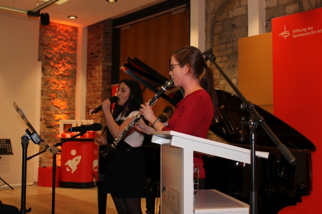 Neben Julian wurden in einer sehr schönen Veranstaltung Kevin Höft (Rivius Gymnasium Attendorn), Luisa Frey (St. Ursula Gymnasium Attendorn) und Janne Kilgus (Gymnasium der Lennestadt) ausgezeichnet. Vorstand Bernd Schablowski von der Sparkasse ALK betonte die Bedeutung des Einsatzes für die Gesellschaft und lobte die großartigen Leistungen der Schüler. Für tolle Musik sorgten Eva Parassi, Aida Baradari, Sophia Hogrebe und Katharina Quast vom Rivius Gymnasium.