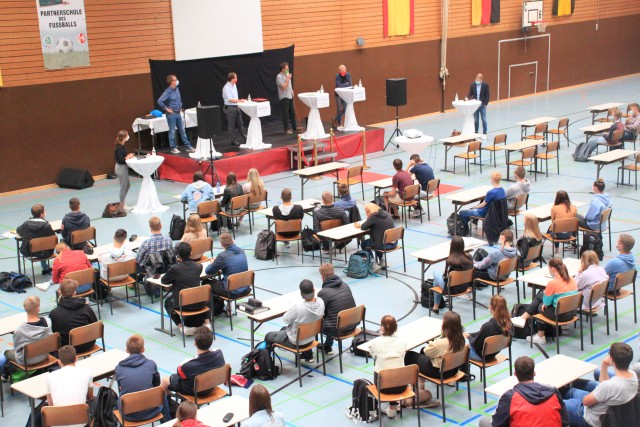 Humorvoller und persönlicher wurde es dann in einer „lockeren Fragerunde“, in welcher die Kandidaten diverse Satzanfänge fortführen mussten. Anschließend erhielten sie zwei Auswahlmöglichkeiten, zwischen denen sie sich schnell und spontan entscheiden mussten. Besonders die ausgewählte Option „Bier“ zur Frage „Bier oder Wein?“ entlockte dem ein oder anderen Zuschauer der Q1 und Q2 einen tosenden Applaus.