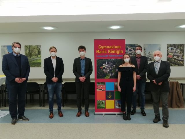 In Anwesenheit von Schulleiter Fabian Borys wurden Paula Schulte-Sprenger und Jonah Schneider ausgezeichnet. Beratungslehrer Peter Peil würdigte Paula Schulte-Sprenger und hob ihre Fähigkeit hervor, logisch zu denken und sprachliche und naturwissenschaftliche Gesetzmäßigkeiten nachhaltig zu verstehen. Darüber hinaus verfüge Paula über imponierendes schauspielerisches Talent, das sie über viele Jahre im Rahmen der Theater AG, etwa als Drachentöterin bei der Aufführung „Tod dem Drachen“, überzeugend gezeigt habe. Für ihr bereits begonnenes Medizinstudium bringe sie ideale Voraussetzungen mit, da sie gewissenhaft, ausgeglichen und auch lebensfroh sei.