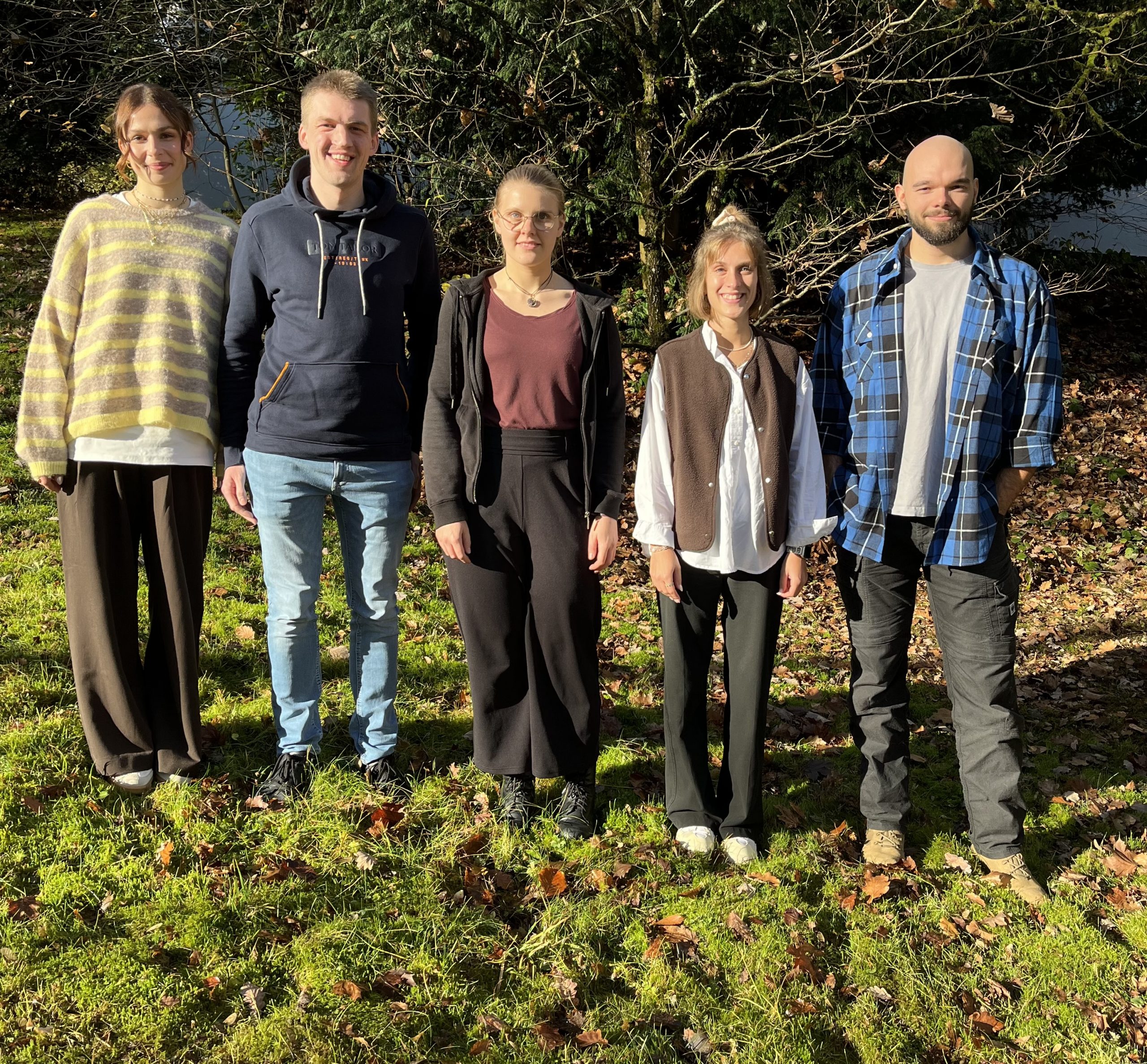 v.l.n.r.: Kim Zacker (D/Ge), Noah Klein (KR/Ge), Theresa Salamon (E/Ku), Amelie Skoluda (D/Spa), Björn Paslat (M/Spo)