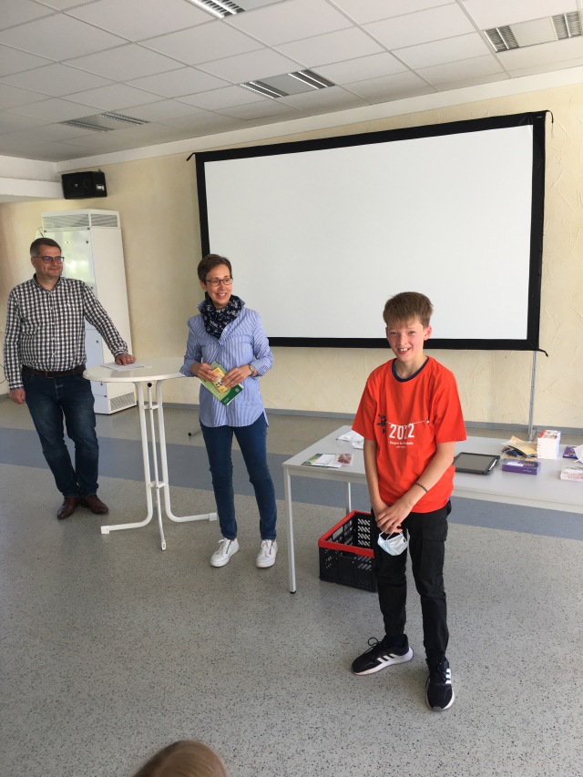 Leonard Hupertz sowie Justus Krippendorf (beide 6a) konnten nicht nur ein Geschenk für einen zweiten Preis entgegen nehmen, sondern bekamen auch beide das Känguru T-Shirt für die meisten richtigen Antworten am Stück.