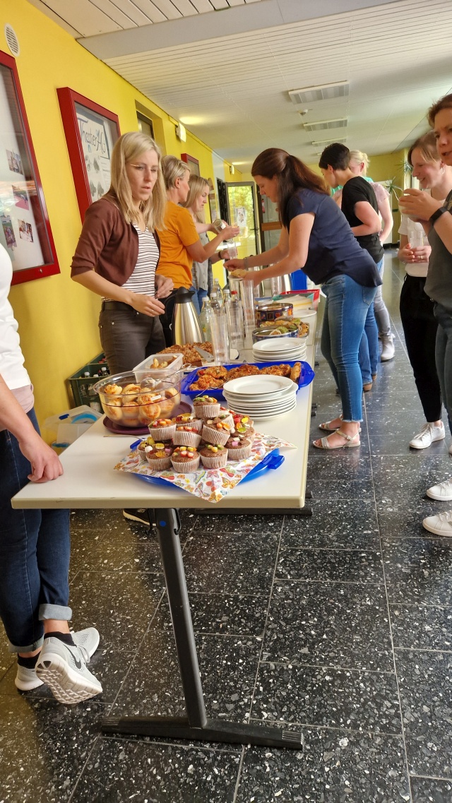 Die Eltern und Geschwisterkinder werden in der Zwischenzeit mit Kaffee und Kuchen versorgt und können mit den anderen Eltern und der Klassenleitung ins Gespräch kommen. Nach knapp zwei Stunden war dann zwar alles schon wieder vorbei, aber die Zeit des Wartens konnte spürbar verkürzt und noch mehr Vorfreude auf das neue Schuljahr geweckt werden.